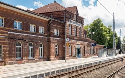 The station building maintains its status as an architectural heritage monument in Mecklenburg-Vorpommern, representing regional railway infrastructure development.