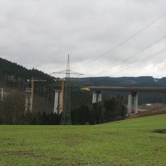 The Nuttlar Valley Bridge is a road bridge spanning a valley in Bestwig that carries A46 motorway traffic. The structure extends 660 meters and is supported by six cylindrical pillars rising to 115 meters in height.