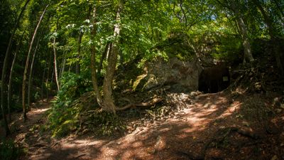 The cave stretches 140 meters through the mountain, featuring two natural entrances and an artificial opening known as the window.