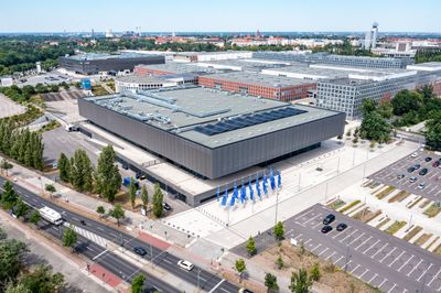 The CityCube Berlin spans three levels with 50 different halls and spaces, offering a pillar-free convention hall that accommodates 5,000 attendees.