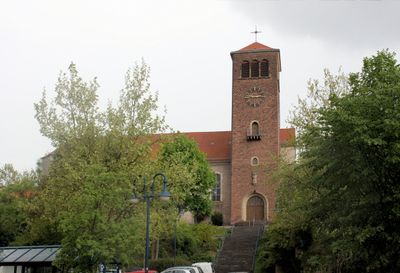 St. Josef is a parish church in Diefflen with early Gothic features including ribbed vaulting and sandstone buttresses. The interior displays a neo-Gothic high altar and round carved pillars that frame the worship space.