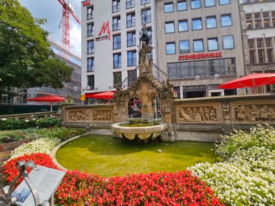 The fountain is located in the old town center near Cologne Cathedral and is easily reached by public transit. Its stepped design makes wheelchair access difficult, something to keep in mind when planning your visit.