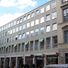 The five-story building features evenly arranged window rows and a spacious arcade at ground level leading to retail displays and entrances.
