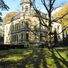 The two-story Villa Amalia features a hexagonal tower with a slate roof and stands within a park filled with protected old trees.