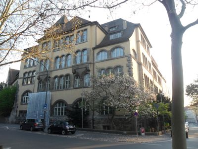 The school building, constructed in 1906 by architect Franz Rank, experienced severe damage during a 1945 bombing raid and underwent reconstruction between 1948 and 1950.
