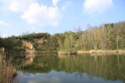 The Sperenberger Gipsbrüche contains four water-filled quarries with steep rock walls and natural vegetation across 23 hectares of protected land.