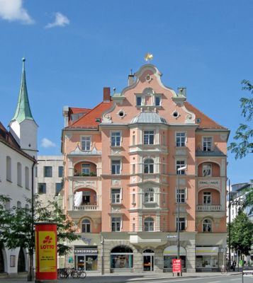 The ORAG-Haus stands next to the Ignaz Günther House, which holds the distinction of being the narrowest building in Munich's old town.