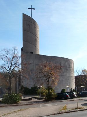 St. Maximilian Kolbe church is a modern church building in Wilhelmsburg with a polygonal ground plan and a distinctive spiral tower. The structure shapes the neighborhood's skyline through its striking profile and clear geometric design.
