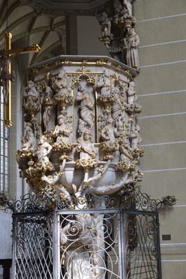 Pulpit of Wallfahrtskirche Maria im Sand, Kanzel in der Wallfahrtskirche Maria im Sand in Dettelbach