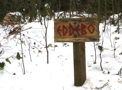 The Eddeboe archaeological complex consists of two distinct fortified areas with visible walls and moats, located in the western Marienhölzung forest section of Flensburg.