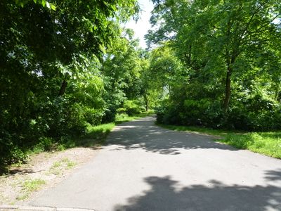 The Teltow Canal Walk extends for 12 kilometers through Berlin's southern edge, featuring paved paths bordered by trees and water views.