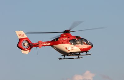 The helicopter carries the name Christoph, following German air rescue naming tradition that honors Saint Christopher as protector of travelers.