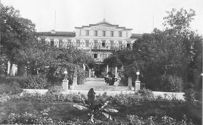 The establishment utilized its private Oranien spring, discovered in 1838, to supply mineral water for therapeutic treatments and guest services.