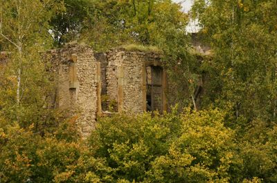 The remaining walls of Schloss Bübingen rise from a former water castle site, with two central projections extending across 35 meters of the main facade.