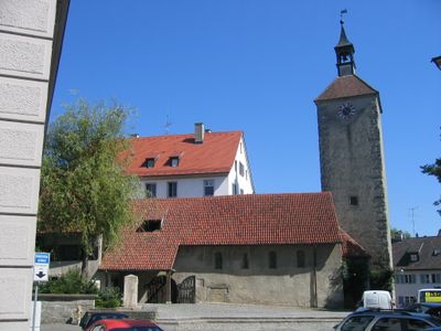 The church tower predates the main structure and was constructed for defensive purposes due to its location near the original harbor of Lindau.