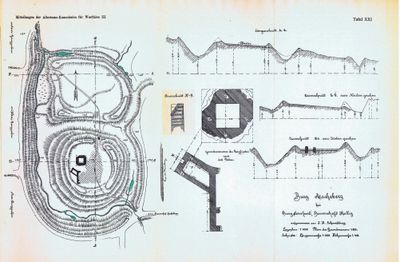 Archaeological excavations in 1900 revealed a polygonal keep and an 11-meter-long palace structure, providing information about medieval noble residences in Westphalia.