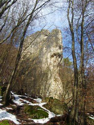 Zehnerstein, Rock climbing site in Obertrubach, Germany.