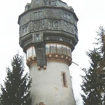 The water tower, constructed in 1912, operated as part of Frankfurt's freight station infrastructure from 1888 until 2000, serving the growing industrial needs.