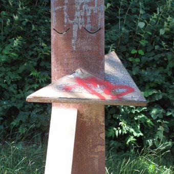 Wir haben Gesichter, Cautionary monument in Viktoriapark, Berlin, Germany.