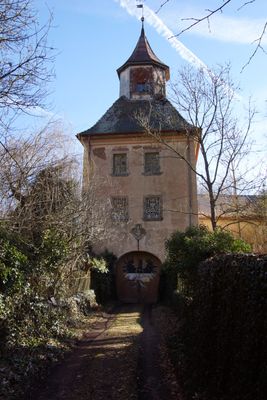 The property includes a walled castle park with a baroque garden pavilion and an orangery, constructed in the mid-18th century west of the original moat.