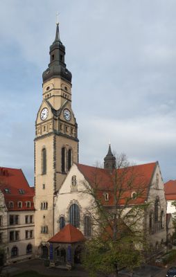 The Philippuskirche is a religious building in Leipzig-Lindenau featuring Baroque Revival and Art Nouveau architectural styles, with a tower reaching 62.5 meters (205 feet) high that stands out in the district. Today it houses a hotel with 29 rooms and serves as a cultural center for concerts, celebrations, and conferences.
