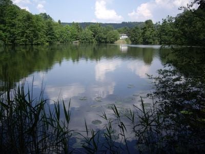 The Bergsee lake spans 2 hectares with a length of 200 meters, width of 100 meters, and reaches a depth of 15 meters.