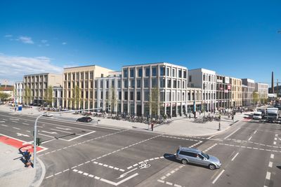 The development of NeuerMarkt began in 2009 when Max Bögl Group acquired the 28,000-square-meter site, previously housing a municipal slaughterhouse and parking facility.