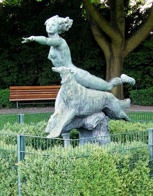 Diana with greyhounds, Bronze sculpture in Humboldthain, Germany
