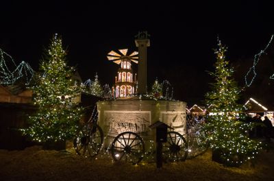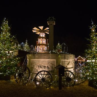 A 12-meter Christmas pyramid, the tallest in the region, displays hand-carved figures from the Ore Mountains while rotating at Salzhof square.