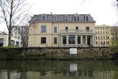 The mansard roof showcases the refined architectural tastes of Leipzig's wealthy merchant families from that era. A distinctive feature is the villa's position overlooking the exposed Elstermühlgraben waterway on its rear side, made visible since the 2000s.