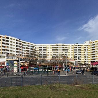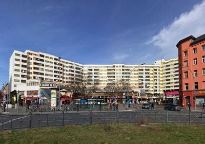 The building stands in a neighborhood that represents Berlin's Turkish community, with numerous cultural establishments and restaurants surrounding the structure.