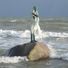 During January 2017, the Baltic Sea water froze around the sculpture, creating a natural ice formation that transformed its appearance.