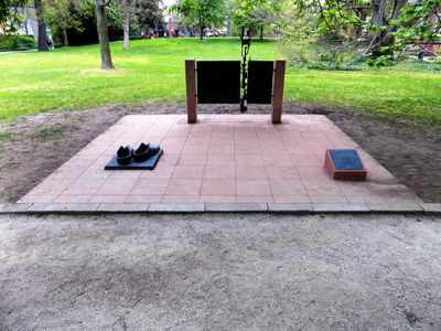 Die Großen Schuhe Luthers, Bronze memorial in Heylshof Garden, Worms, Germany.