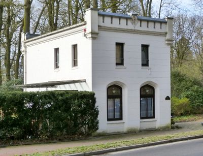 The former gatekeeper's house stands within Knoops Park, featuring architectural elements that represent 19th-century German building traditions.