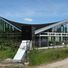 The Kulturzentrum Bürgergarten features a distinctive hyperbolic shell roof spanning 20.5 meters square with floor-to-ceiling windows overlooking Lake Templin.