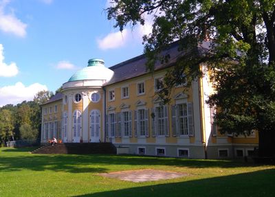 The park view replicates the design of Schloss Sanssouci in Potsdam, earning it the local nickname 'Sanssouci of the Börde'.