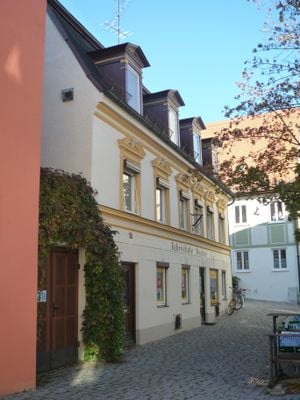 General-von-Nagel-Straße 3, house in Freising, Upper Bavaria, Germany. Two-storey gambrel roof building with historisising facade.
