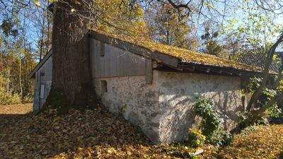 Brechstuben in Brannenburg, steinberg; Erdgeschossiger Flachsatteldachbau aus unverputztem Nagelfluhmauerwerk, am First bezeichnet mit ‚1822‘
