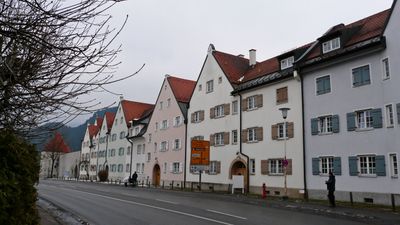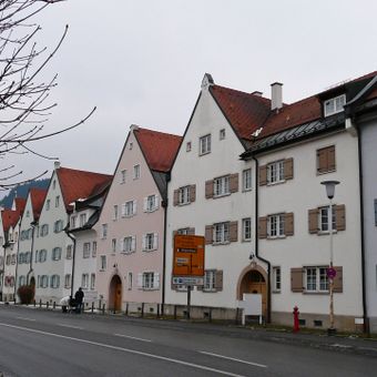Klosterstraße 2, Sebastianstraße 6, 8, 10, 12, Teil der Arbeiterwohnsiedlung der Hanfwerke Füssen-Immenstadt an der Sebastian-/Klosterstraße in Füssen