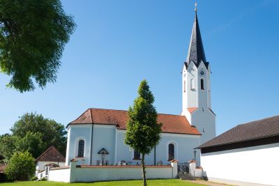 Katholische Kirche Stephanus mit Mauer, church building in Geisenhausen, Lower Bavaria, Germany