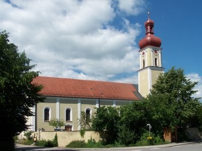 Located at coordinates 48.915428, 12.34103 in Upper Palatinate, the church includes a neo-Gothic chapel from 1869 that functions as the current sacristy.