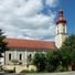 The St. Johannes building features a long nave with a retracted choir and a flank tower topped with an onion dome and pilaster divisions.