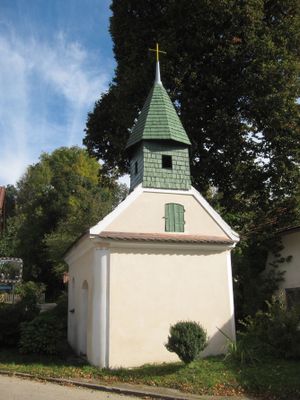 Kapelle, kleiner Massivbau mit leicht eingezogenem halbrundem Chorabschluss und Dachreiter, bezeichnet 1892, im Kern wohl noch erste Hälfte 18. Jahrhundert; mit Kirchenausstattung