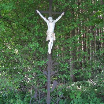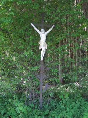 Kruzifix, schmiedeeisernes Kreuz mit gusseisernem Korpus, 19./20. Jahrhundert