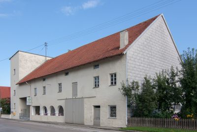 Nebengebäude, waal; zweigeschossiger, traufseitiger Satteldachbau mit drei Rundbogenarkaden zur Straße (Laubengang), 1. Hälfte 19. Jahrhundert