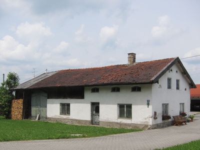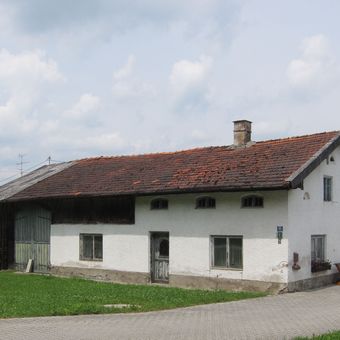 Ehemaliger Kleinbauernhof, erdgeschossiger verputzter Einfirsthof mit Kniestock und flachem Satteldach, Wirtschaftsteil mit Bundwerk, nach 1855