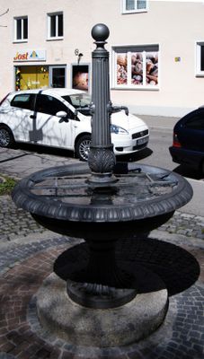 Brunnen, laufbrunnen, gusseiserne Rundschale mit kannelierter Säule, 1. Hälfte 19. Jahrhundert