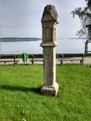 Seegerichtssäule, ehemalige Landmarke oder Seegrenze, Tuffsteinsäule mit leeren Kielbogennischen, bez. 1522