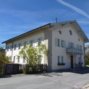 Pfarrhof, mit Sandsteinlisenen und vorkragendem Flachsatteldach, 1861