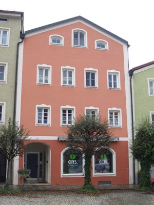 Stadtplatz 24, wohnhaus, dreigeschossiger giebelständiger Satteldachbau, erste Hälfte 18. Jahrhundert